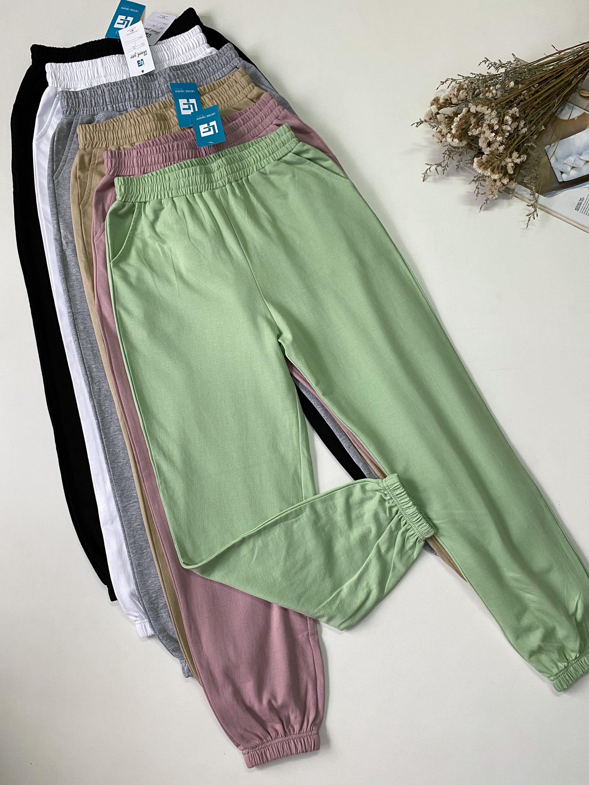 Basic Plain Loose Fit Cuffed Hem Joggers